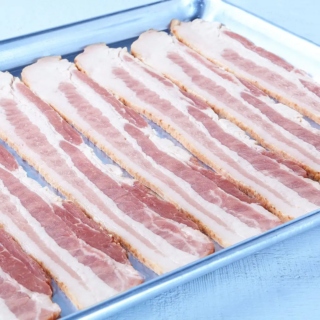 Bacon frais tranché 8 tranches / 2'' (anciennement 6-8 tranches / Lb), bout à bout, fumé naturellement