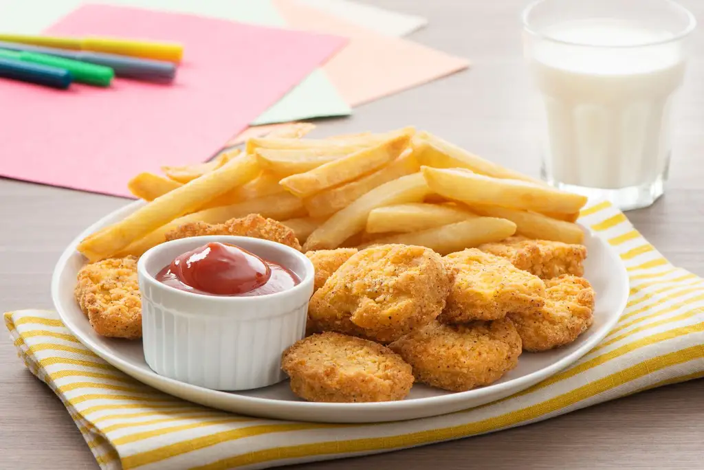 Pépites de poulet, escalopettes de poulet, assaisonnées, panées, entièrement cuites.