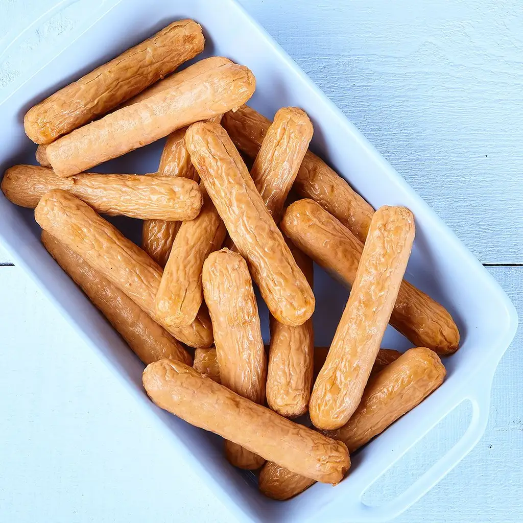 Saucisses à déjeuner porc et boeuf conservées, entièrement cuites dans un boyau 100 % végétal