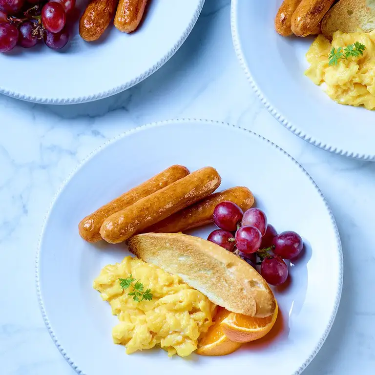 Saucisses à déjeuner porc et poulet, conservées, non cuites dans un boyau 100 % végétal